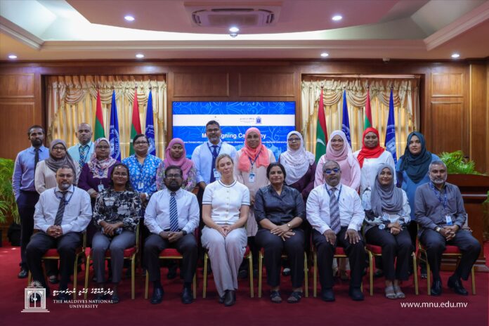 މެރިން ސައިންސްގެ ދާއިރާއިން އެއްބާރުލުން ދިނުމަށް ސޮނެވާ ސީއެސްއެމް އާއިއެކު އެއްބަސްވުމެއްގައި ސޮއިކުރުން | ފޮޓޯ: އެމްއެންޔޫ