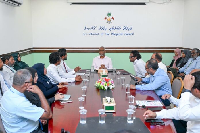 ރައީސުލްޖުމްހޫރިއްޔާ ޑޮކްޓަރ މުޙައްމަދު މުޢިއްޒު، އަރިއަތޮޅު ދެކުނުބުރީ ދިގުރަށު ކައުންސިލާއި، އ.ތ.މ ކޮމިޓީ އަދި ރަށުގެ ބައެއް މުއައްސަސާތަކުގެ އިސްވެރިންނާ ބައްދަލުކުރައްވައި ރައްޔިތުންނަށް އެންމެ މުހިންމު ކަންކަމާ ގުޅޭގޮތުން މަޝްވަރާކުރައްވައިފިއެވެ.