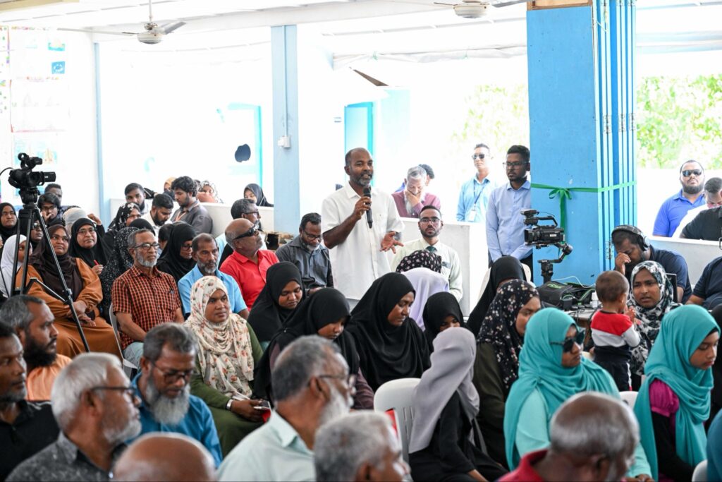 ރައްޔިތުންގެ ވާހަކަތައް އަޑުއައްސަވައި، ކަންބޮޑުވުންތަކާއި، ޚިޔާލުފުޅުތަކަށް ރިޢާޔަތްކުރައްވައި ވާހަކަފުޅުދައްކަވަމުން ރައީސުލްޖުމްހޫރިއްޔާ ވަނީ، މިއަދު ސޮއިކުރެއްވި ބިން ހިއްކުމާއި ބަނދަރު ތަރައްޤީ ކުރުމުގެ ޢަމަލީ މަސައްކަތް އަންނަ ނޮވެންބަރު މަހު ފެށޭނެކަމުގެ ޔަޤީންކަން ދެއްވާފައެވެ. ބިންހިއްކައި ނިމުމުގެ ކުރިންވެސް ރަށުގައި ބޯހިޔާވަހިކަމުގެ މަޝްރޫޢެއް އަންނަ އަހަރު ފައްޓަވާނެ ކަމަށް އެމަނިކުފާނު ވިދާޅުވިއެވެ.