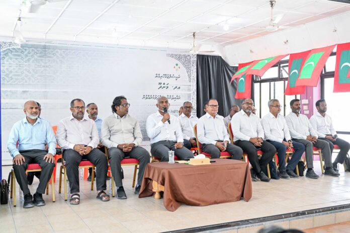 ރައްޔިތުންގެ ވާހަކަތައް އަޑުއައްސަވައި، ކަންބޮޑުވުންތަކާއި، ޚިޔާލުފުޅުތަކަށް ރިޢާޔަތްކުރައްވައި ވާހަކަފުޅުދައްކަވަމުން ރައީސުލްޖުމްހޫރިއްޔާ ވިދާޅުވީ، އެމަނިކުފާނު މަންދުއަށް ވަޢުދުވެވަޑައިގެންފައިވާ ގޮތަށް، ރަށުގައި މިއަދު އަމަލީ މަސައްކަތް ފެށިގެންދިޔަ ހުރިހާ މަޝްރޫޢުތައް ނިންމަވާ އެކަންކަން ހަޤީގަތަކަށް ހައްދަވައިދެއްވާނެ ކަމަށެވެ.