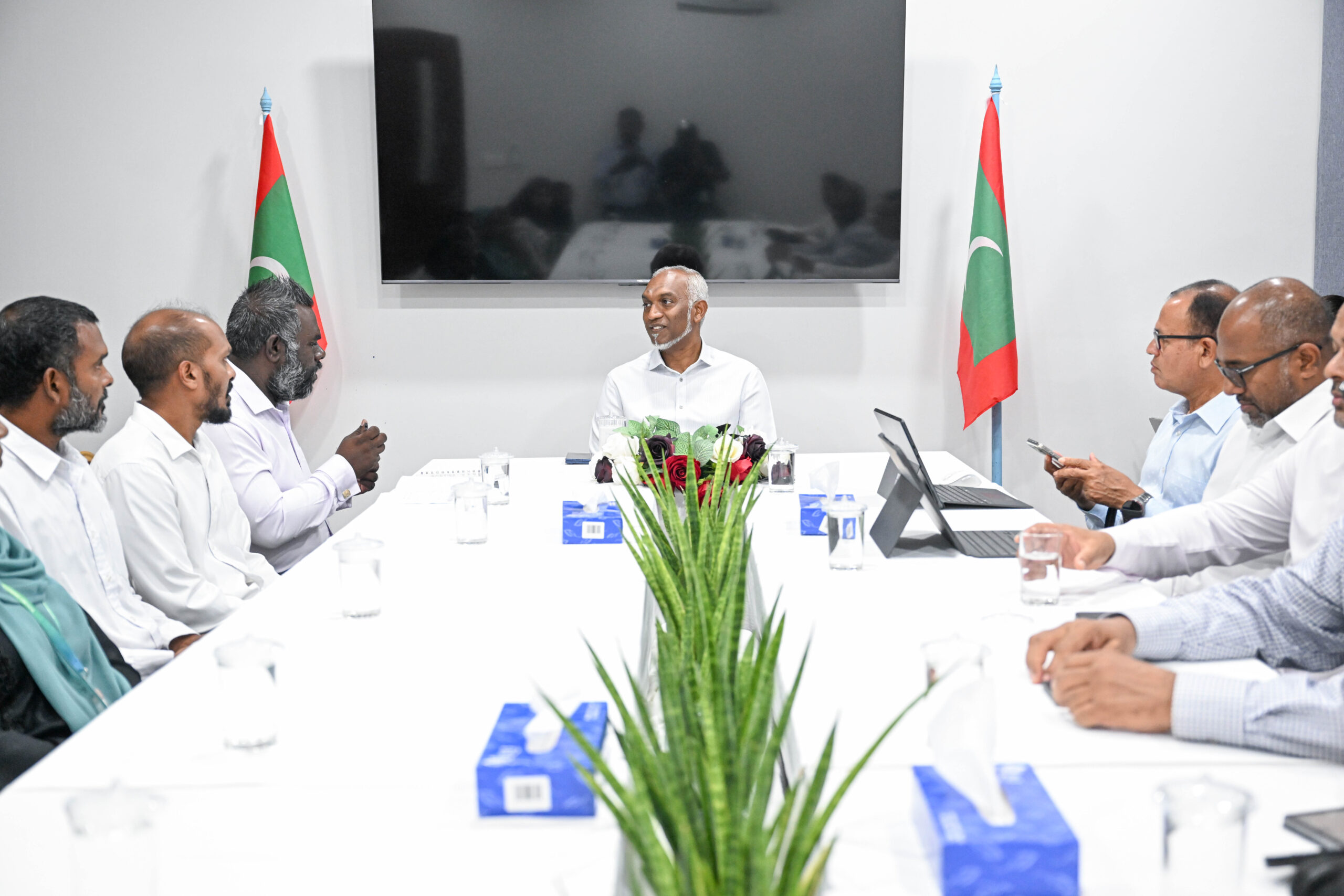 ރައީސުލްޖުމްހޫރިއްޔާ ޑޮކްޓަރ މުޙައްމަދު މުޢިއްޒު، މިލަދުންމަޑުލު އުތުރުބުރީ ފޭދޫ ކައުންސިލާއި، އ.ތ.މ. ކޮމިޓީ އަދި ރަށުގެ ބައެއް މުއައްސަސާތަކުގެ އިސްވެރިންނާ ބައްދަލުކުރައްވައި ރައްޔިތުންނަށް އެންމެ މުހިންމު ކަންކަމާ ގުޅޭގޮތުން މަޝްވަރާކުރައްވައިފިއެވެ.