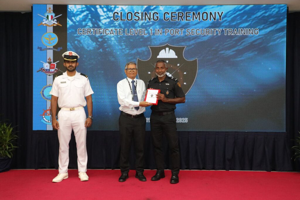 މޯލްޑިވްސް ނޭޝަނަލް ޑިފެންސް ފޯސްގެ ކޯސްޓްގާޑް ޓްރެއިނިންގ ސްކޫލުން، މޯލްޑިވްސް ޕޯޓްސް ލިމިޓެޑުގެ މުވައްޒަފުންނަށް އަމާޒުކޮށްގެން، ”ސެޓިފިކެޓް ލެވެލް 1 އިން ޕޯޓް ސެކިޔުރިޓީ ޓްރެއިނިންގ“ ހިންގައިފިއެވެ.