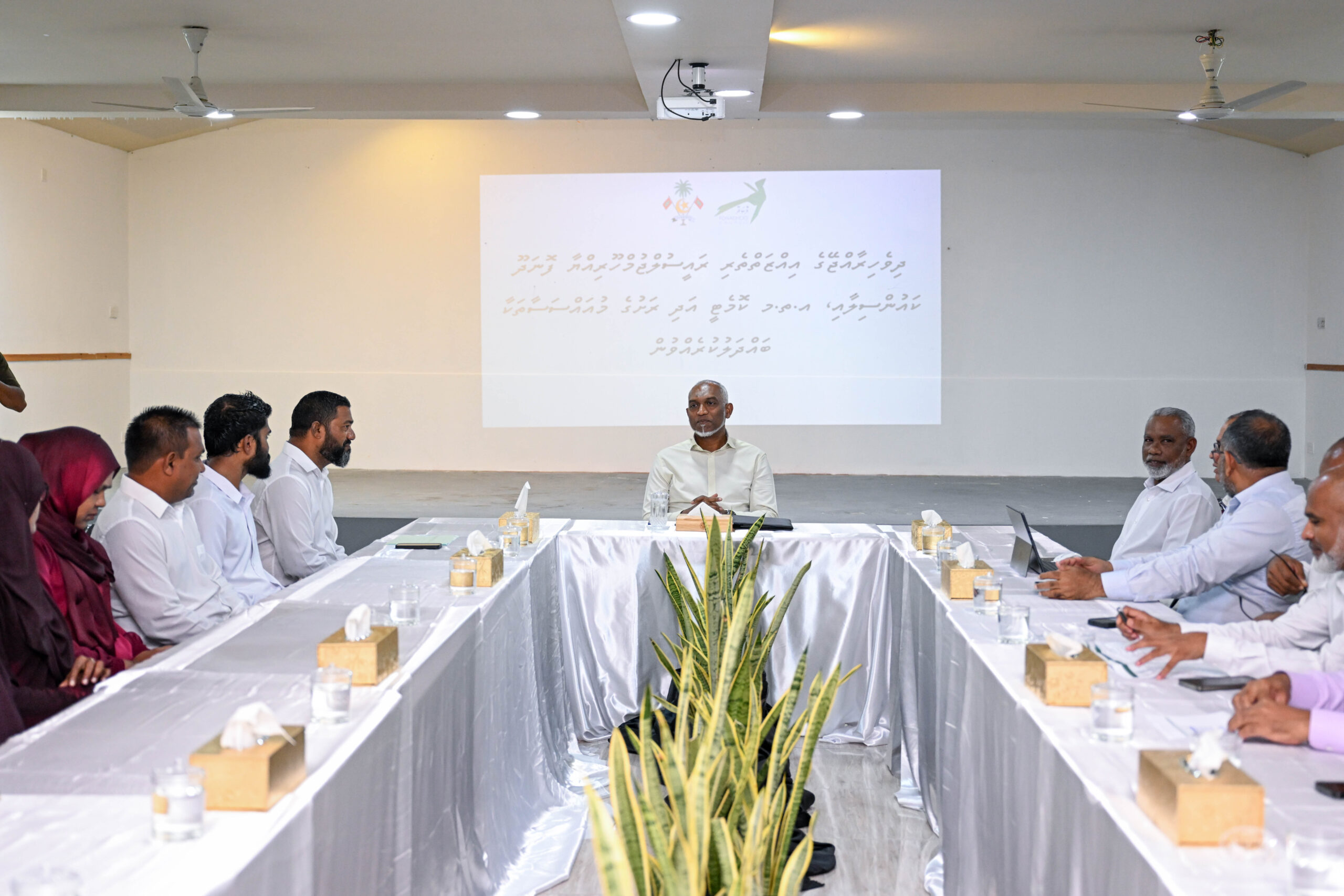 ރައީސުލްޖުމްހޫރިއްޔާ ޑޮކްޓަރ މުޙައްމަދު މުޢިއްޒު، ހައްދުންމަތީ ފޮނަދޫ ކައުންސިލާއި، އ.ތ.މ. ކޮމިޓީ އަދި ރަށުގެ ބައެއް މުއައްސަސާތަކުގެ އިސްވެރިންނާ ބައްދަލުކުރައްވައި ރައްޔިތުންނަށް އެންމެ މުހިންމު ކަންކަމާ ގުޅޭގޮތުން މަޝްވަރާކުރައްވައިފިއެވެ.