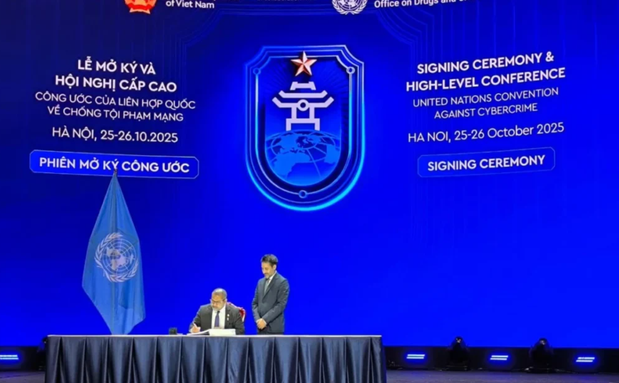 އދ.ގެ ސައިބަރ ކްރައިމްއާ ދެކޮޅު މުއާހަދަގައި ދިވެހިރާއްޖެއިން މިއަދު ސޮއިކޮށްފިއެވެ. މި މުއާހަދާގެ ރާއްޖޭގެ ފަރާތުން ސޮއިކުރެއްވީ ހާރިޖީ ވަޒީރު ޑރ.އަބްދުﷲ ހަލީލެވެ.