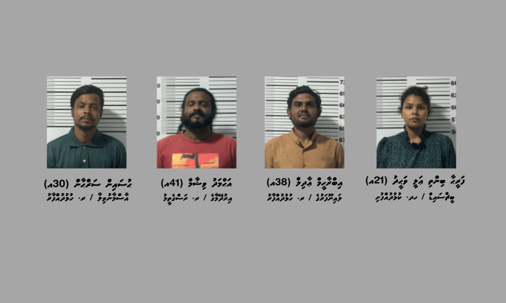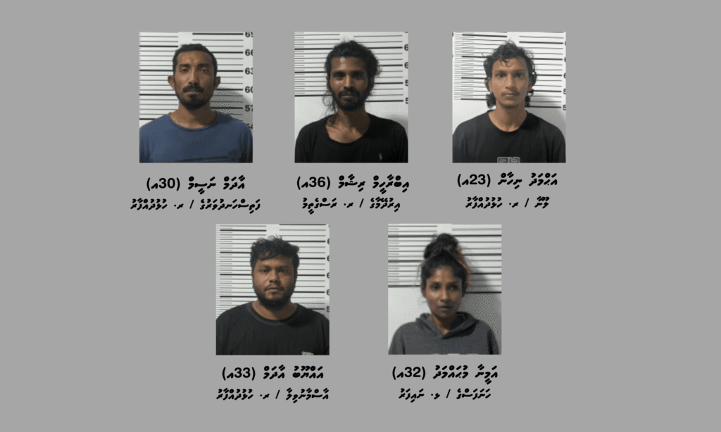 މި މައްސަލައާ ގުޅިގެން ހައްޔަރުކޮށްފައިވަނީ ރ. ހުޅުދުއްފާރު / ލޫނާ، އަޙްމަދު ނިހާން (23އ) އާއި، ރ. ރަސްގެތީމު / އިރުދޭމާގެ، އިބްރާހީމް ރިޝާމް (36އ) އާއި، ރ. ހުޅުދުއްފާރު / ފަތިސްހަނދުވަރުގެ، އާދަމް ނަސީމް (30އ) އާއި، ޅ. ނައިފަރު / ހަނަފަސްގެ، އަމީނާ މުޙައްމަދު (32އ) އާއި، ރ. ހުޅުދުއްފާރު / އާސްމާނުވިލާ، އައްޔޫބު އާދަމް (33އ) އާއި، ހދ. ކުޅުދުއްފުށި / ބީޗްސައިޑް، ފަރީޙާ ބިންތި ޢަލީ ވަޙީދު (21އ) އާއި، ރ. ހުޅުދުއްފާރު / ލައިނޫފަރުގެ، އިބްރާހީމް ޢާދިލް (38އ) އާއި، ރ. ރަސްގެތީމު / އިރުދޭމާގެ، އަޙްމަދު ވިޝާމް (41އ) އާއި، ރ. ހުޅުދުއްފާރު / އާސްމާނުވިލާ، ޙުސައިން ސަރްޙާން (30އ) އެވެ.