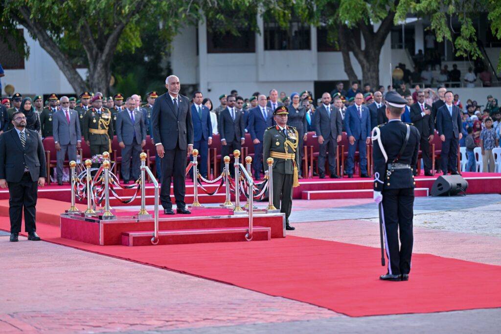 އަސްކަރީ ހުށަހެޅުމުގެ ޙަރަކާތް ފެށުމުގެ ކުރިން، ދިވެހި ސިފައިން ވަނީ، ރައީސުލްޖުމްހޫރިއްޔާ ޑޮކްޓަރ މުޙައްމަދު މުޢިއްޒަށް އަސްކަރީ ކުރުނީހެއް އަރުވައިފައެވެ. އެއަށްފަހު، ޗީފް އޮފް ޑިފެންސް ފޯސް މޭޖަރ ޖެނެރަލް އިބްރާހީމް ޙިލްމީ ވާހަކަފުޅު ދެއްކެވިއެވެ.