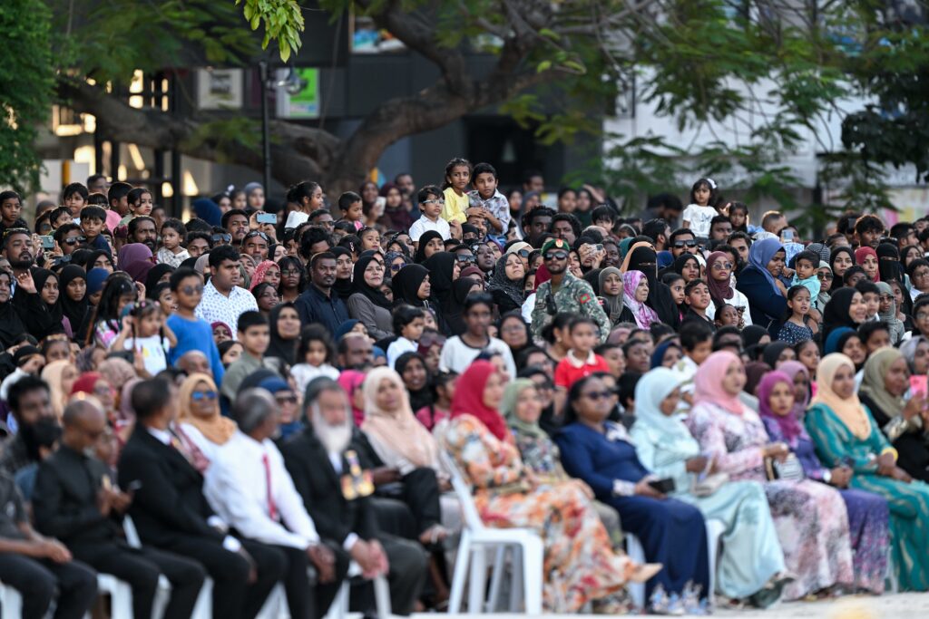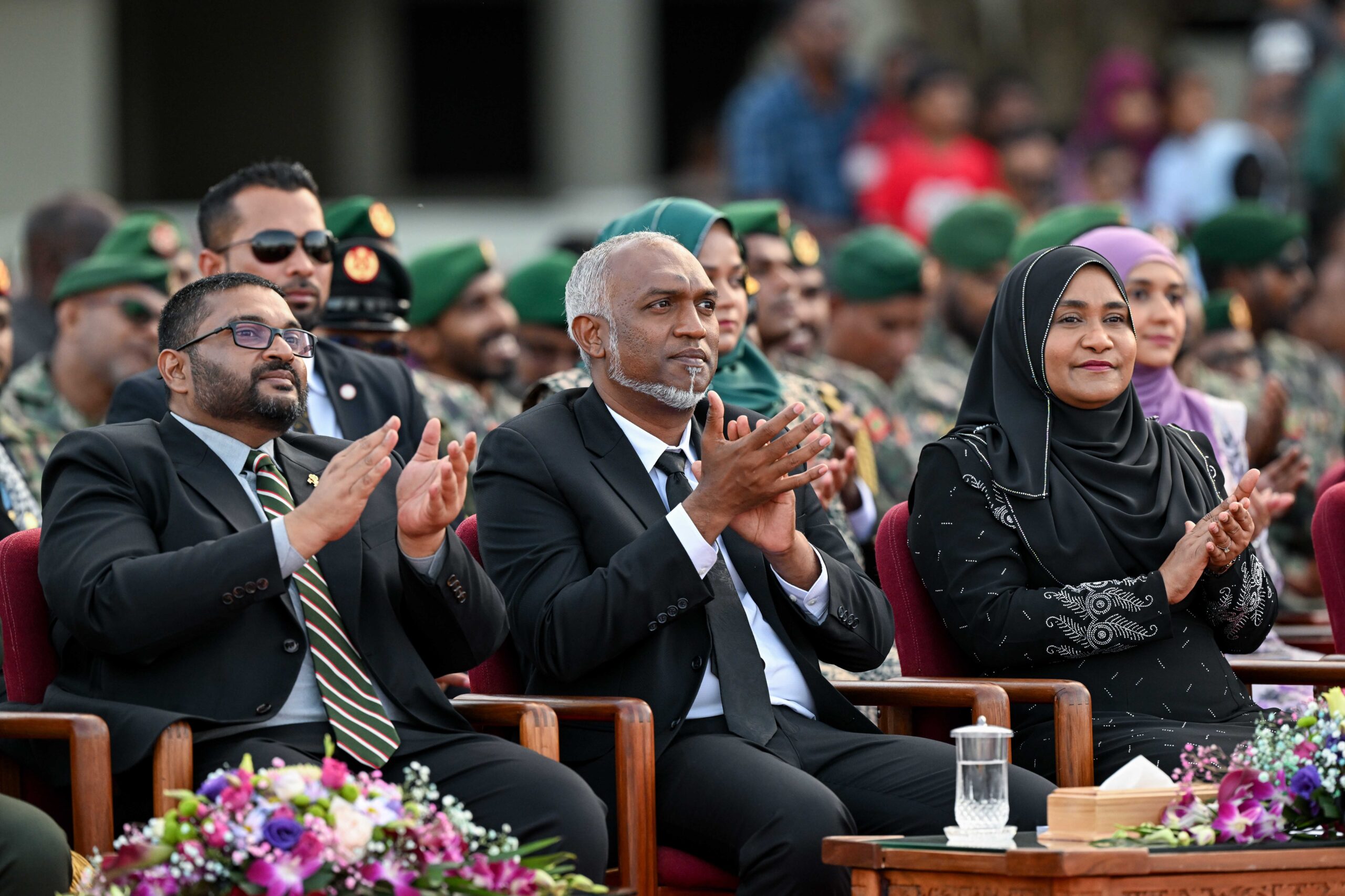ދިވެހިރާއްޖޭގެ ނަޞްރުގެ ދުވަހުގެ މުނާސަބާ ފާހަގަ ކުރުމަށް، ދިވެހި ޤައުމީ ދިފާޢީ ބާރު، އެމް.އެން.ޑީ.އެފުން ޖުމްހޫރީ މައިދާނުގައި މިއަދު ކުރިއަށް ގެންދިޔަ ސިފައިންގެ އަސްކަރީ ހުށަހެޅުމުގެ ޙަރަކާތް، ދިވެހިރާއްޖޭގެ ރައީސުލްޖުމްހޫރިއްޔާ އަދި ސިފައިންގެ އެންމެ މަތީވެރިޔާ ޑޮކްޓަރ މުޙައްމަދު މުޢިއްޒުއާއި އެމަނިކުފާނުގެ އަނބިކަނބަލުން ސާޖިދާ މުޙައްމަދު ބައްލަވާލައްވައިފިއެވެ.