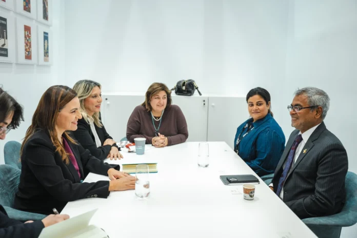 ލަންޑަންގައި މިހާރު ކުރިއަށްދާ ދުނިޔޭގެ ފަތުރުވެރިކަމުގެ އެންމެ ބޮޑު މައުރަޒުތަކުގެ ތެރޭގައި ހިމެނޭ ވޯލްޑް ޓްރެވަލް މާކެޓް (ޑަބްލިއު.ޓީ.އެމް) 2025 ގައި، ދިވެހިރާއްޖޭގެ ފަތުރުވެރިކަމާ ބެހޭ ވަޒީރު އޮނަރަބަލް ޠާރިޤް އިބްރާހިމްއާއި ގްރީސްގެ ފަތުރުވެރިކަމާ ބެހޭ ވަޒީރު، އޮނަރަބަލް މިސްޒް އޮލްގާ ކެފަލޮގިޔާނީއާ ވަރަށް ފައިދާހުރި ބައްދަލުވުމެއް ބާއްވައިފިއެވެ.