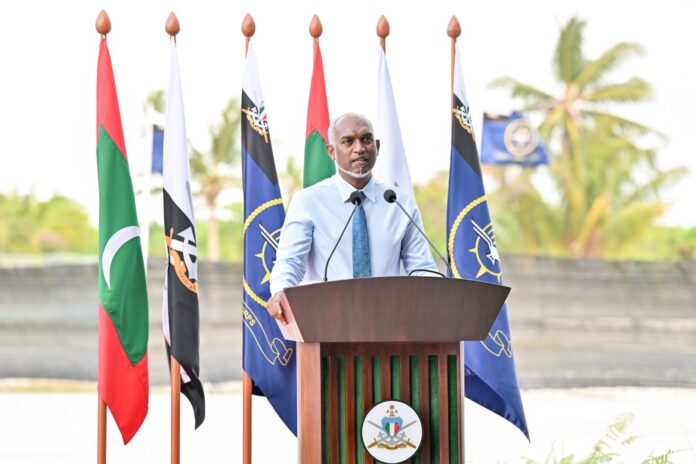 ރައީސުލްޖުމްހޫރިއްޔާ މިފަދައިން ވިދާޅުވީ ރާއްޖޭގެ އެންމެ ދެކުނުގެ ދެ އަތޮޅުކަމަށްވާ، ފުވައްމުލައް ސިޓީއާއި އައްޑޫ ސިޓީއަށް މިހާރު ކުރައްވަމުންގެންދަވާ ދަތުރުފުޅުގައި އައްޑޫ ސިޓީއަށް ވަޑައިގެން، މޯލްޑިވްސް ނޭޝަނަލް ޑިފެންސް ފޯސް (އެމް.އެން.ޑީ.އެފް) ގެ އެއަރ ކޯރގެ ގަން އެއަރ ސްޓޭޝަން އިފްތިތާޙްކޮށްދެއްވުމަށް އައްޑޫސިޓީ ގަމުގައި ބޭއްވި ރަސްމިއްޔާތުގައި ވާހަކަފުޅުދައްކަވަމުންނެވެ.