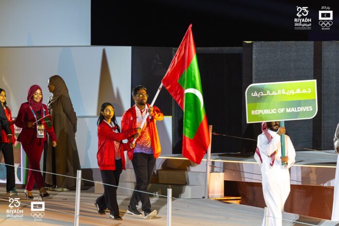 ސަޢުދީގެ ރިޔާޛްގައި އޮއް މި ގޭމްސްގެ ކުލަގަދަ ފެށުމުގެ ރަސްމިއްޔާތުގައި ދިވެހިރާއްޖޭގެ ދިދަ އުފުލާލުމުގެ ޝަރަފު ހޯދީ، އެންމެ ފަހުގެ ޤައުމީ ޓީޓީ ޗެމްޕިއަން އައިޝަތު ރަފާ ނާޒިމާއި، ގައުމީ ސީނިއަރ ފެތުންތެރިޔާ އިމްއާން ޢަލީއެވެ.