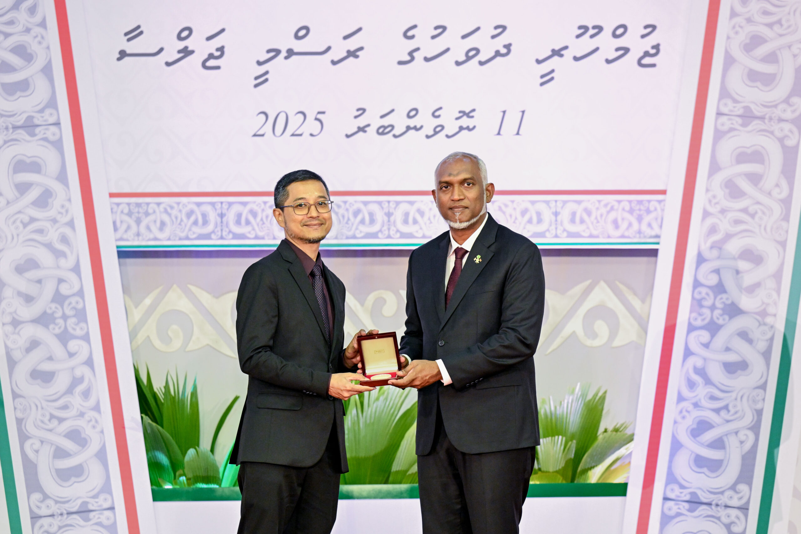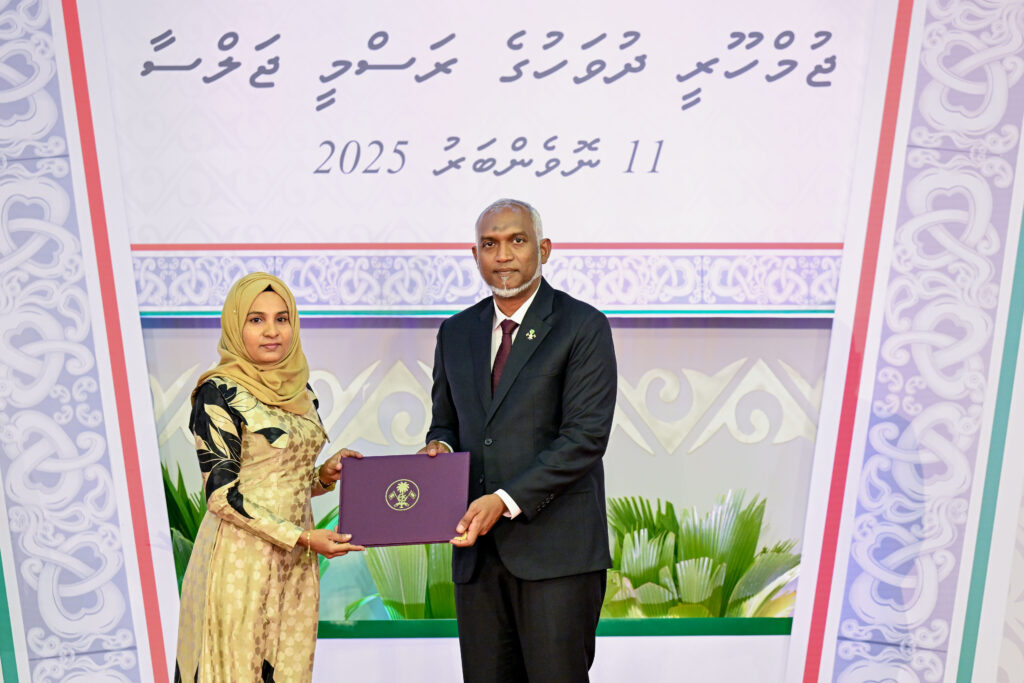 މި ބޭފުޅުންނަށް އިނާމު ދެއްވީ، ޖުމްހޫރީ ދުވަހުގެ މުނާސަބަތުގައި މިއަދު ހެނދުނު ޒުވާނުންގެ މަރުކަޒުގެ ހޯލުގައި ބޭއްވެވި ރަސްމީ ޖަލްސާގައި، ރައީސުލްޖުމްހޫރިއްޔާ ޑޮކްޓަރ މުޙައްމަދު މުޢިއްޒުއެވެ.