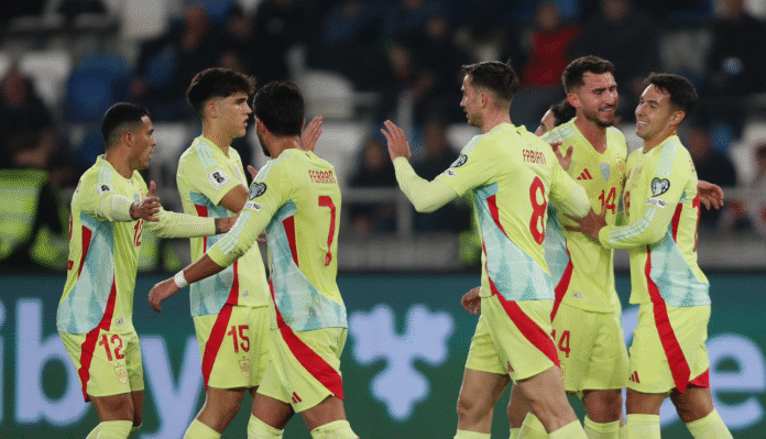 ވޯލްޑް ކަޕް ކޮލިފައިންގައި ރޭ ކުޅުނު މެޗުން ޖޯޖިއާ 4-0 އިން ބަލިކޮށް އަންނަ އަހަރު އެމެރިކާ، ކެނަޑާ އަދި މެކްސިކޯގައި ބާއްވާ ފީފާ ވޯލްޑް ކަޕް ފުޓްބޯޅަ މުބާރާތުގެ ޖާގައެއް ހޯދުމާ ގާތަށް ސްޕެއިނުން ޖެހިލައިފިއެވެ.