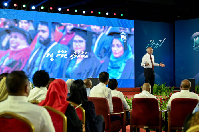 އެމަނިކުފާނު މިހެން ވިދާޅުވީ، ސަރުކާރަށް ދެ އަހަރު ފުރުން ފާހަގަކުރުމަށް، ”ރައްޔިތުންނާއެކު ކުރިއަށް- ހަފުތާ 104“ މި ނަމުގައި ބޭއްވި ޚާއްޞަ ރަސްމިއްޔާތުގައި ވާހަކަފުޅުދައްކަވަމުންނެވެ.