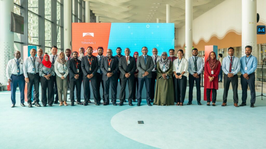 މިކަން ފާހަގަކުރުމަށް ޓާމިނަލްގައި ބޭއްވި ރަސްމިއްޔާތު ޝަރަފުވެރިކޮށްދެއްވީ މޯލްޑިވްސް ޓްރާންސްޕޯޓް އެންޑް ކޮންޓްރެކްޓިން ކޮމްޕެނީގެ މެނޭޖިން ޑިރެކްޓަރު އަހުމަދު ސައުދީއެވެ.