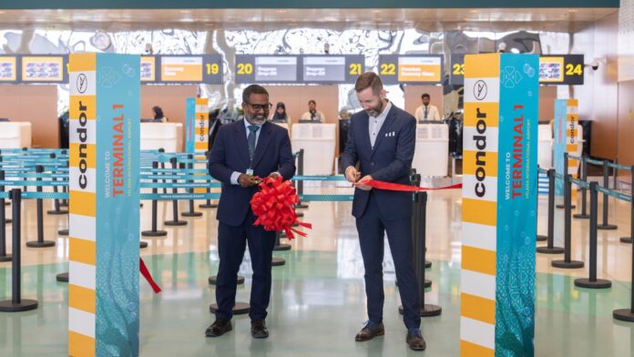 އެ ރަސްމިއްޔާތުގައި ކޮންޑޯގެ ޗެކިން ކައުންޓަރުތައް ރަސްމީކޮށް ހުޅުވައި, އެ އެއާލައިނުން ފުރި 302 ފަސިންޖަރުންނަށް ވަނީ ހަދިޔާދީފަ އެވެ. އަދި ޓާމިނަލް 1 އަށް ކައިރި ކުރި ކޮންޑޯގެ ފުރަތަމަ ފްލައިޓް, DE2320 އިން ރާއްޖެ އައި 277 ފަސިންޖަރުންނަށް ވަނީ ސަގާފީ ހަރަކާތްތަކާއެކު ހޫނު މަރުހަބާއެއް ކިޔައިފަ އެވެ.