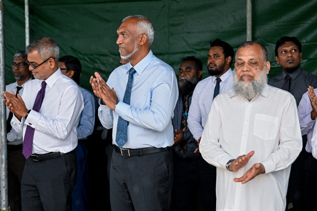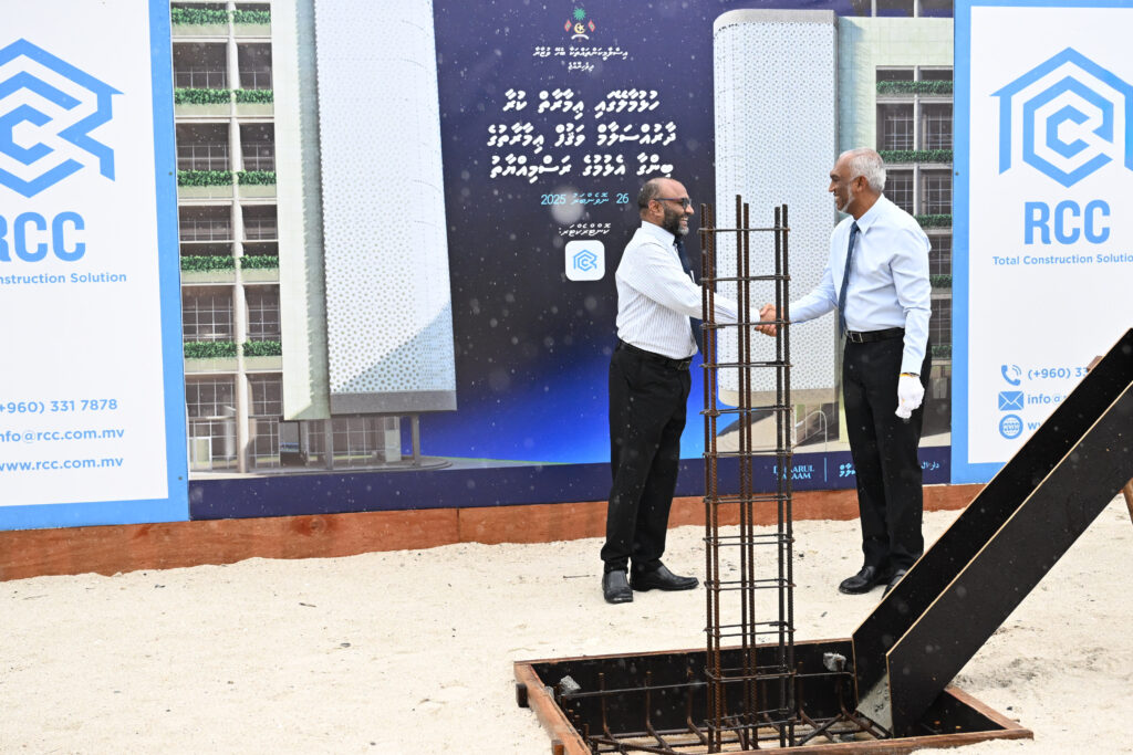 ހުޅުމާލޭގައި ޢިމާރާތް ކުރާ ދާރުއްސަލާމް ވަޤްފް ޢިމާރާތުގެ ބިންގާ އެޅުމުގެ ރަސްމިއްޔާތުގެ ތެރެއިން | ފޮޓޯ: ރައީސް އޮފީސް