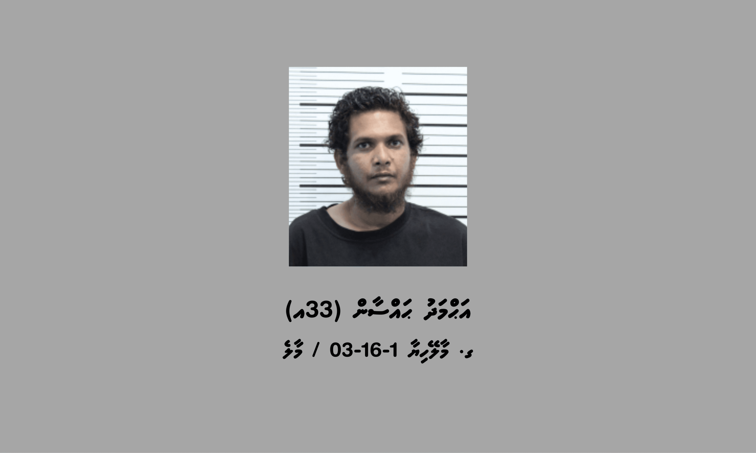 މިމައްސަލައާ ގުޅިގެން ހައްޔަރުކޮށްފައިވަނީ ގ. މާލޭހިޔާ 1-16-03 / މާލެ، އަޙްމަދު ޙައްސާން (33އ)އެވެ.