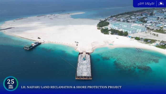 ނައިފަރު ބިން ހިއްކުމުގެ ޢަމަލީ މަސައްކަތް ރަސްމީކޮށް ފެށީ، ރައީސުލްޖުމްހޫރިއްޔާ ޑރ. މުޙައްމަދު މުޢިއްޒު ޅ. އަތޮޅު މީހުން ދިރިއުޅޭ ރަށްރަށަށް ކުރެއްވި ދަތުރުފުޅުގެ ތެރެއިން ނައިފަރަށް ވަޑައިގެން، މިދިޔަ އޮކްޓޫބަރ މަހުގެ 28 ވަނަ ދުވަހުއެވެ. މި މަޝްރޫޢަކީ އެ ރަށަށް ދިމާވެފައިވާ ބިމުގެ ދަތިކަމަށް ހައްލެއް ހޯދައިދިނުމަށް ސަރުކާރުން ކުރިއަށްގެންދާ މުހިންމު މަޝްރޫޢެކެވެ.