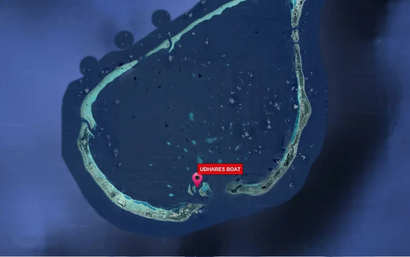 މާލެއިން ފުރައިގެން ގއ. ވިލިނގިއްޔަށް ދަތުރުކުރި “އުދަރެސް” ބޯޓު، ލ. އޮޅުވެލި ކައިރީގައި އޮންނަ ފަރަކަށް އަރައި އަޑިއަށް ހިނގައްޖެ އެވެ.