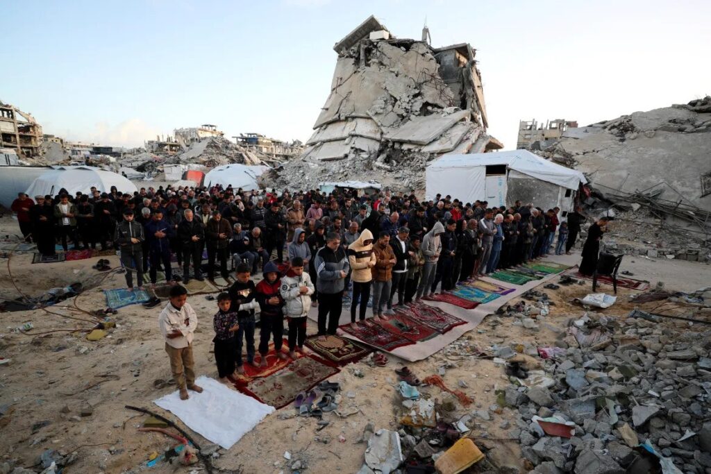 ބިރުވެރިކަމާއި ހިތްދަތިކަމުގެ ތެރޭގައި ޣައްޒާގެ ރައްޔިތުން އީދު ނަމާދު ކުރަނީ