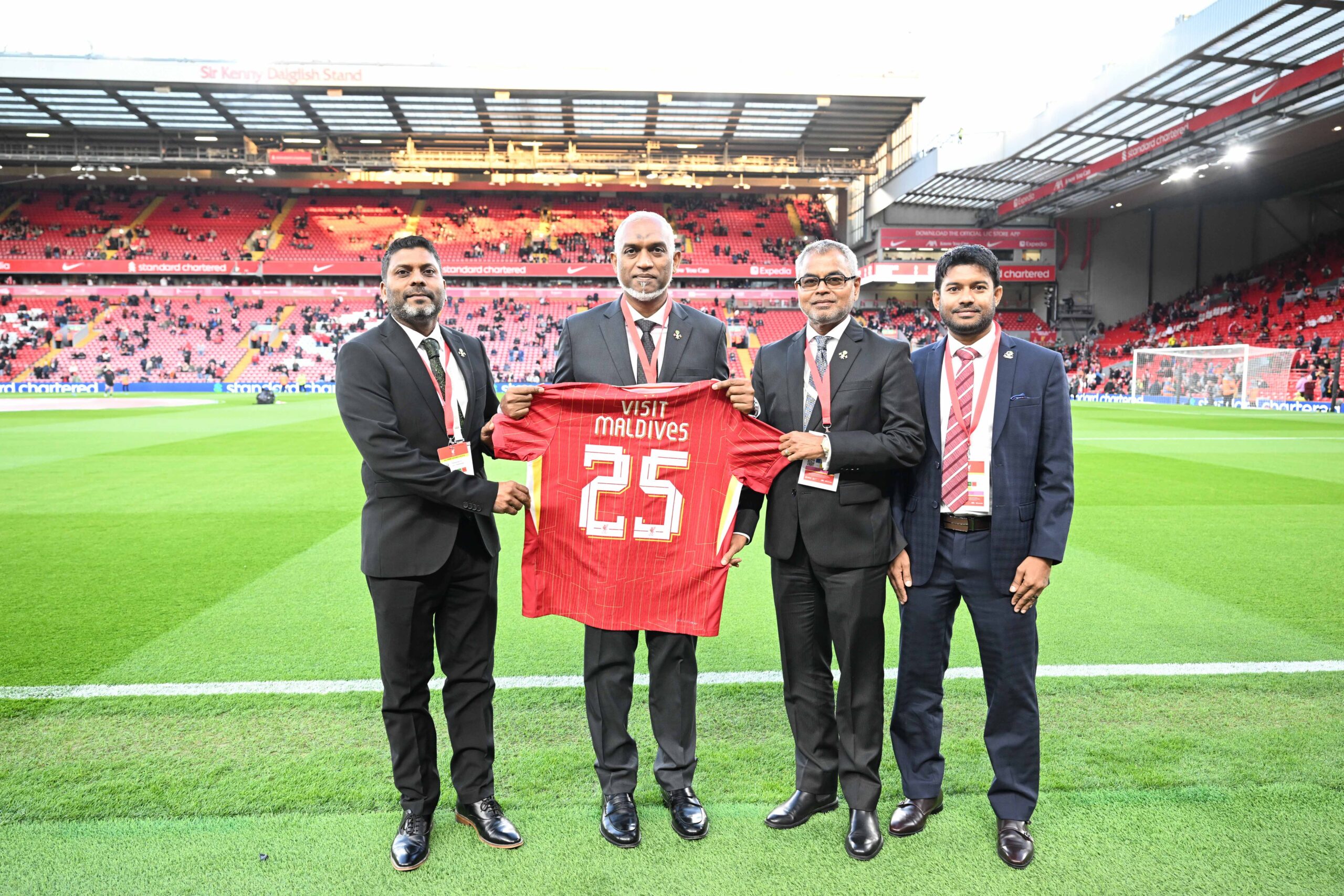 އިނގިރޭސިވިލާތުގެ ލިވަޕޫލް ފުޓްބޯލް ކްލަބް (ލިވަޕޫލް އެފް.ސީ) އާއި މޯލްޑިވްސް މާކެޓިންގް އެންޑް ޕަބްލިކް ރިލޭޝަންސް ކޯޕަރޭޝަން (އެމް.އެމް.ޕީ.އާރު.ސީ) / ވިޒިޓް މޯލްޑިވްސްއާ ގުޅިގެން، ދިވެހިރާއްޖޭގެ ފަތުރުވެރިކަން އިޝްތިހާރު ކުރުމަށް ކުރިއަށްގެންދާ ކޯ-ބްރޭންޑް ކެމްޕޭން ހަރަކާތް ފެށުމުގައި ބައިވެރިވެވަޑައިގަތުމަށް، ރައީސުލްޖުމްހޫރިއްޔާ ޑރ. މުޙައްމަދު މުޢިއްޒު، އިނގިރޭސިވިލާތުގެ ލިވަޕޫލް ސިޓީއަށް ކުރެއްވި ދަތުރުފުޅު ނިންމަވާލައްވައިފިއެވެ.