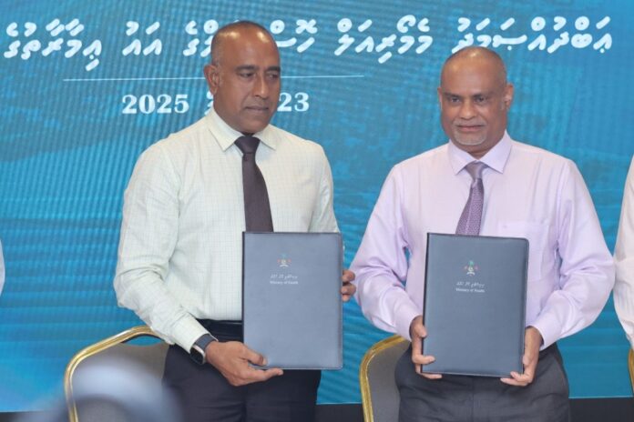 ޑރ. ޢަބްދުއްޞަމަދު މެމޯރިއަލް ހޮސްޕިޓަލްގެ އާ އިމާރާތުގެ މަސައްކަތް ހަވާލުކުރުމުގެ އެއްބަސްވުމުގައި މޯލްޑިވްސް ޓްރާންސްޕޯޓް އެންޑް ކޮންޓްރެކްޓިންގ ކޮމްޕެނީ އާއި ހަވާލުކޮށްފިއެވެ.