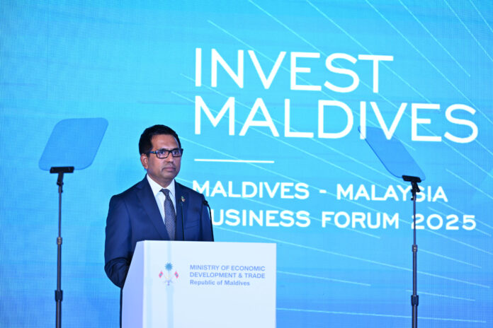 ދިވެހިރާއްޖެ-މެލޭޝިޔާ އިންވެސްޓްމެންޓް ފޯރަމް ހުޅުވުމަށް ބޭއްވި ރަސްމިއްޔާތުގައި ވާހަކަފުޅުދައްކަވަމުން ޢިޤްތިޞާދީ ތަރައްޤީ އާއި ވިޔަފާރިޔާ ބެހޭ ވަޒީރު މުޙައްމަދު ސަޢީދު ވިދާޅުވީ، އަމިއްލަ ވިޔަފާރިތަކުގެ ކުރިއެރުމަށާއި، ބޭރުގެ އިންވެސްޓަރުންނަށް ދިވެހިރާއްޖޭގެ ފުރުސަތުތައް އިތުރަށް ހުޅުވާލުމަށްޓަކައި، ޚާއްޞަ ޤާނޫނެއް އެކުލަވާލެވިފައިވާ ކަމަށެވެ.