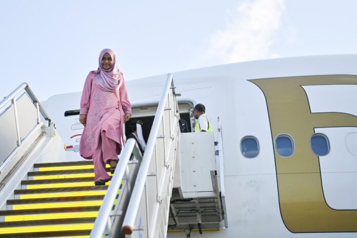މެރކް ފައުންޑޭޝަން ފަސްޓް ލޭޑީސް އިނިޝިއޭޓިވް (އެމް.އެފް.އެފް.އެލް.އައި) ގެ 7 ވަނަ ސަމިޓު ޝަރަފުވެރިކޮށްދެއްވުމަށް، ރައީސުލްޖުމްހޫރިއްޔާގެ އަނބިކަނބަލުން މެޑަމް ސާޖިދާ މުޙައްމަދު، ޔުނައިޓަޑް ޢެރެބް އެމިރޭޓްސް (ޔޫ.އޭ.އީ) ގެ ދުބާއީއަށް ކުރެއްވި ދަތުރުފުޅު ނިންމަވާލެއްވުމަށްފަހު، ރާއްޖެ ވަޑައިގެންފިއެވެ.