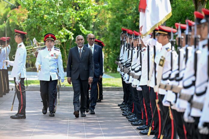 ރައީސުލްޖުމްހޫރިއްޔާ ޑރ. މުހައްމަދު މުޢިއްޒުގެ ދެކަނބަލުން ސިންގަޕޫރަށް މިހާރު ކުރައްވަމުން ގެންދަވާ ފުރަމާނަ ދަތުރުފުޅުގައި އެ ގައުމުގެ ރައީސާއި ބޮޑުވަޒީރު ރަސްމީކޮށް މިއަދު މަރުހަބާ ދަންނަވައިފިއެވެ.
