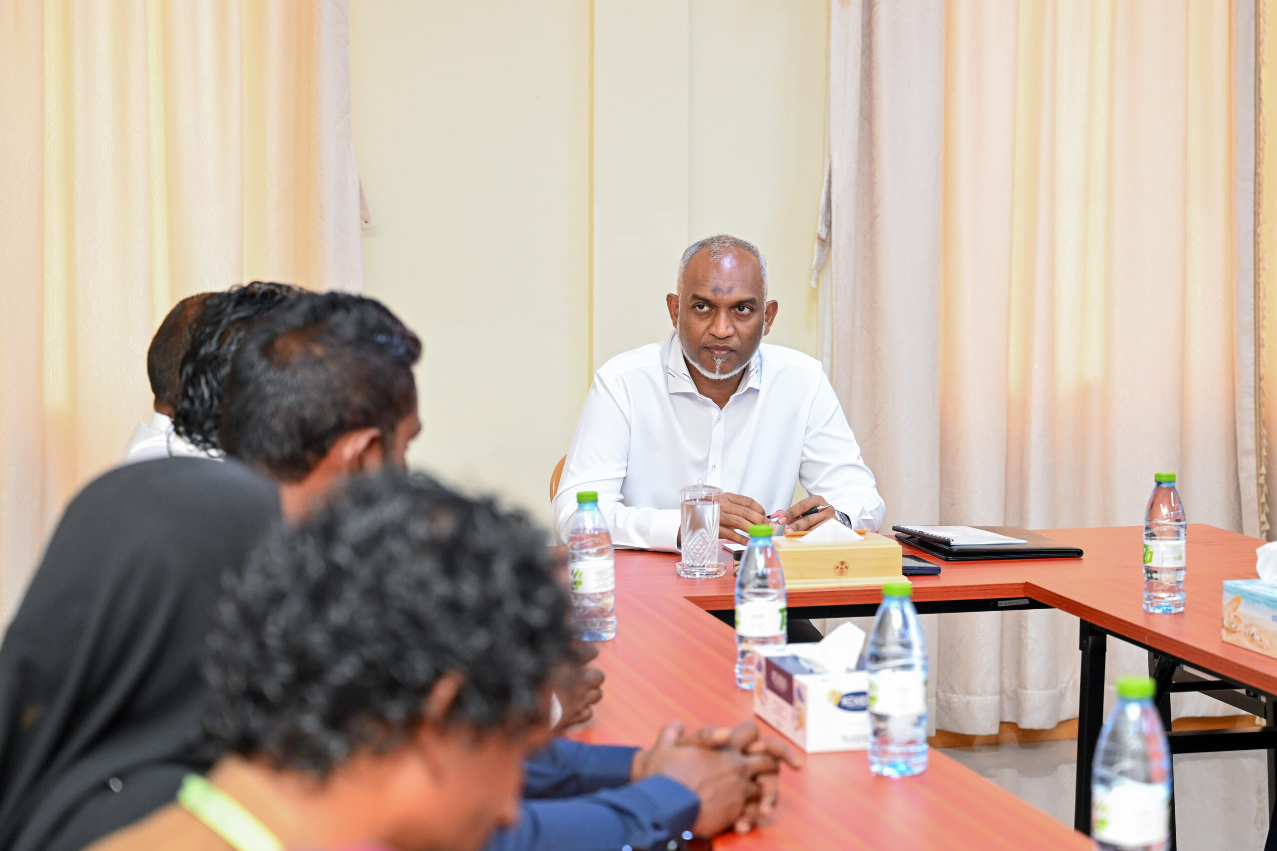 ރައީސުލްޖުމްހޫރިއްޔާ ޑޮކްޓަރ މުޙައްމަދު މުޢިއްޒު، މާޅެންދޫ ކައުންސިލާއި، އ.ތ.މ ކޮމިޓީ އަދި ރަށުގެ ބައެއް މުއައްސަސާތަކުގެ އިސްވެރިންނާ ބައްދަލުކުރައްވައި ރައްޔިތުންނަށް އެންމެ މުހިންމު ކަންކަމާ ގުޅޭގޮތުން މަޝްވަރާކުރައްވައިފިއެވެ.