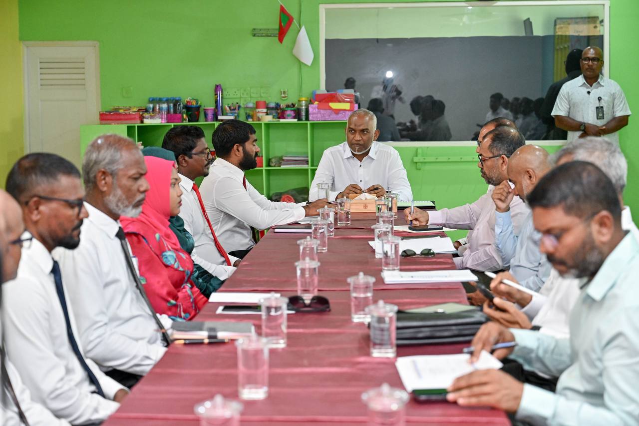 ރައީސުލްޖުމްހޫރިއްޔާ ޑޮކްޓަރ މުޙައްމަދު މުޢިއްޒު، މާޅޮސްމަޑުލު ދެކުނުބުރީ ކަމަދޫ ކައުންސިލާއި، އ.ތ.މ ކޮމިޓީ އަދި ރަށުގެ ބައެއް މުއައްސަސާތަކުގެ އިސްވެރިންނާ ބައްދަލުކުރައްވައި ރަށު ރައްޔިތުންނަށް އެންމެ މުހިންމު ކަންކަމާ ގުޅޭގޮތުން މަޝްވަރާކުރައްވައިފިއެވެ.
