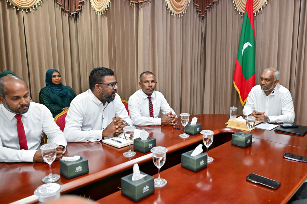 ރައީސުލްޖުމްހޫރިއްޔާ ޑޮކްޓަރ މުޙައްމަދު މުޢިއްޒު، މާޅޮސްމަޑުލު ދެކުނުބުރީ އޭދަފުށީ ކައުންސިލާއި، އ.ތ.މ ކޮމިޓީ އަދި ރަށުގެ ބައެއް މުއައްސަސާތަކުގެ އިސްވެރިންނާ ބައްދަލުކުރައްވައި ރަށު ރައްޔިތުންނަށް އެންމެ މުހިންމު ކަންކަމާ ގުޅޭގޮތުން މަޝްވަރާކުރައްވައިފިއެވެ.