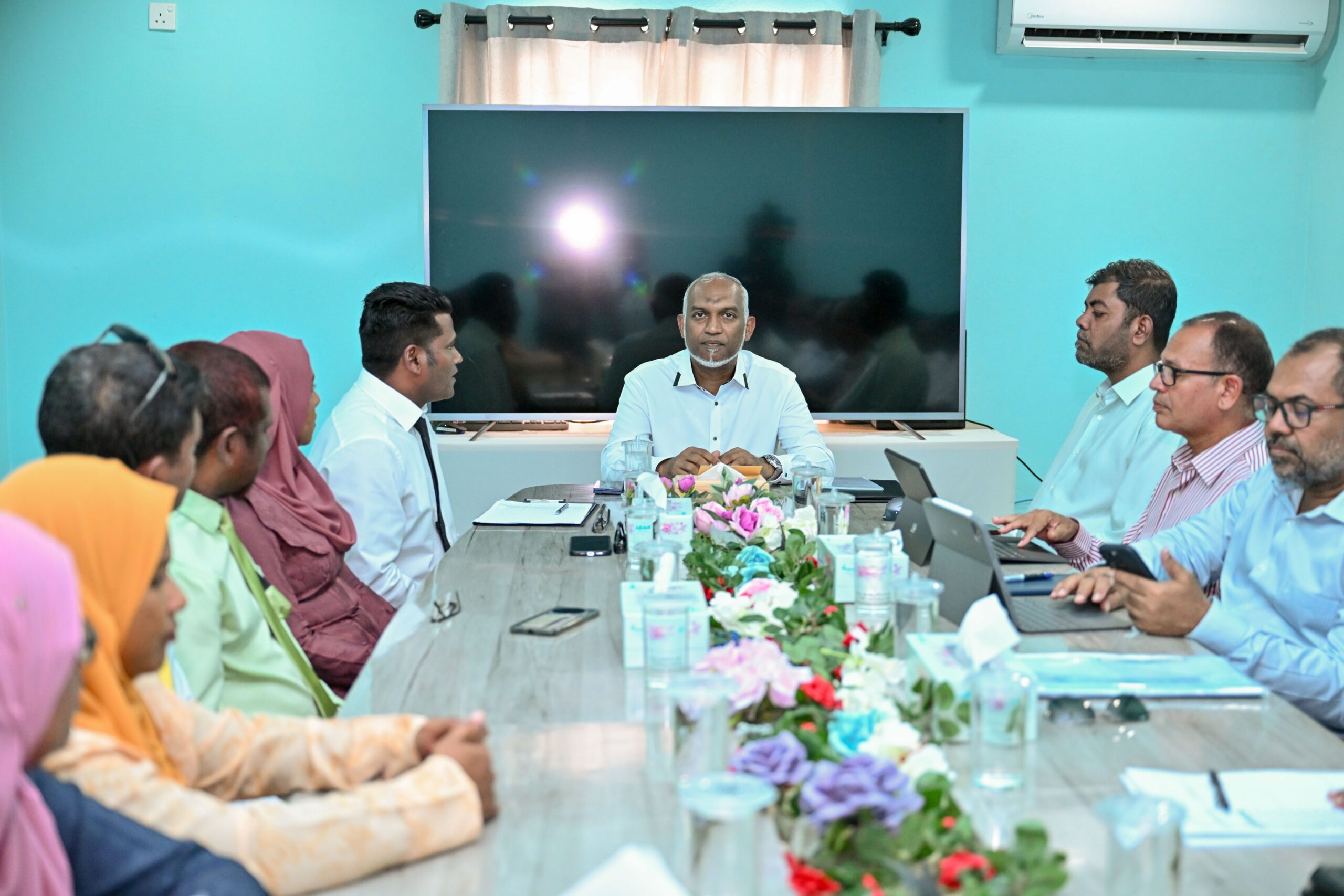ރައީސުލްޖުމްހޫރިއްޔާ ޑޮކްޓަރ މުޙައްމަދު މުޢިއްޒު، މާޅޮސްމަޑުލު ދެކުނުބުރީ ހިތާދޫ ކައުންސިލާއި، އ.ތ.މ ކޮމިޓީ އަދި ރަށުގެ ބައެއް މުއައްސަސާތަކުގެ އިސްވެރިންނާ ބައްދަލުކުރައްވައި ރަށު ރައްޔިތުންނަށް އެންމެ މުހިންމު ކަންކަމާ ގުޅޭގޮތުން މަޝްވަރާކުރައްވައިފިއެވެ.