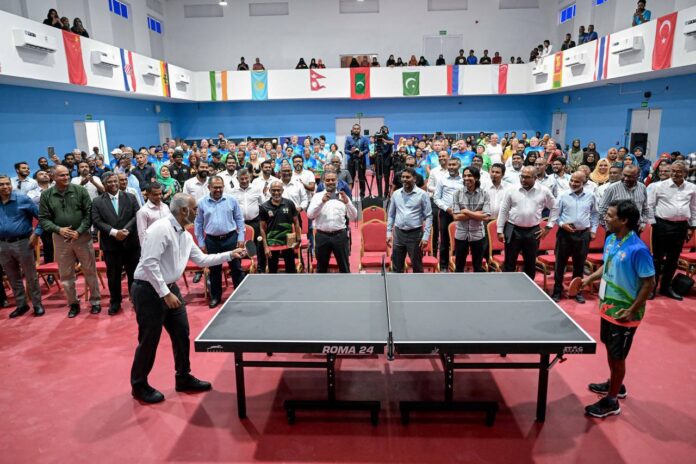 ރައީސުލްޖުމްހޫރިއްޔާ ޑޮކްޓަރ މުޙައްމަދު މުޢިއްޒު ”ތޮއްޑޫ މާސްޓަރސް ޓޭބަލްޓެނިސް މުބާރާތް“ ފެށުމުގެ ރަސްމިއްޔާތު ޝަރަފުވެރިކޮށްދެއްވައިފިއެވެ.