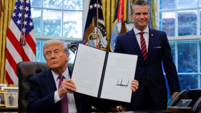 އެމެރިކާގެ ރައީސް ޑޮނަލްޑް ޓްރަމްޕް، ހުކުރު ދުވަހު އެގްޒެކެޓިވް އަމުރެއްގައި ސޮއިކުރައްވައި، އެމެރިކާގެ ދިފާޢީ ވުޒާރާ (ޑިޕާޓްމަންޓް އޮފް ޑިފެންސް) ގެ ނަން ރަސްމީކޮށް ”ހަނގުރާމައިގެ ވުޒާރާ“ (ޑިޕާޓްމަންޓް އޮފް ވޯ) އަށް ބަދަލުކޮށްފިއެވެ.