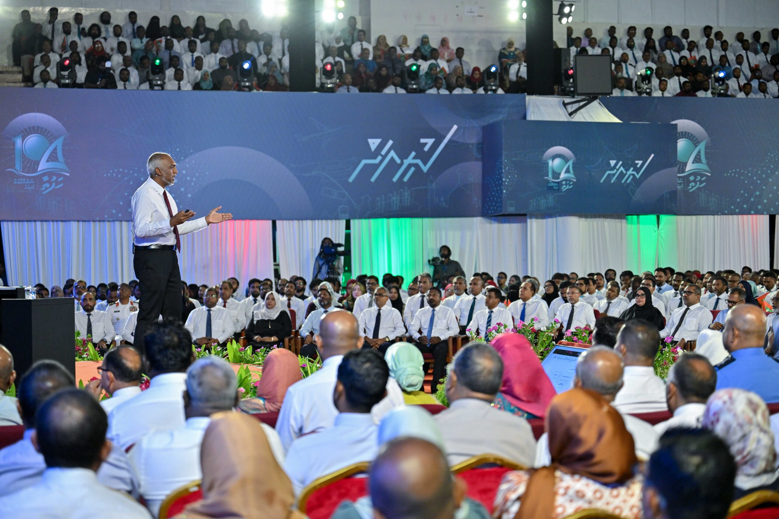 ރައީސުލްޖުމްހޫރިއްޔާ މިފަދައިން ވިދާޅުވީ، އެމަނިކުފާނުގެ ސަރުކާރަށް 2 އަހަރު ފުރުމުގެ މުނާސަބަތުގައި، ޒުވާނުންގެ މަރުކަޒުގައި މިރޭ އޮތް ”ރައްޔިތުންނާއެކު ކުރިއަށް- ހަފްތާ 104 ފާހަގަކުރުމުގެ ރަސްމިއްޔާތު“ގައި، ޤައުމާ މުޚާޠަބުކުރައްވައި ވާހަކަފުޅުދައްކަވަމުންނެވެ.