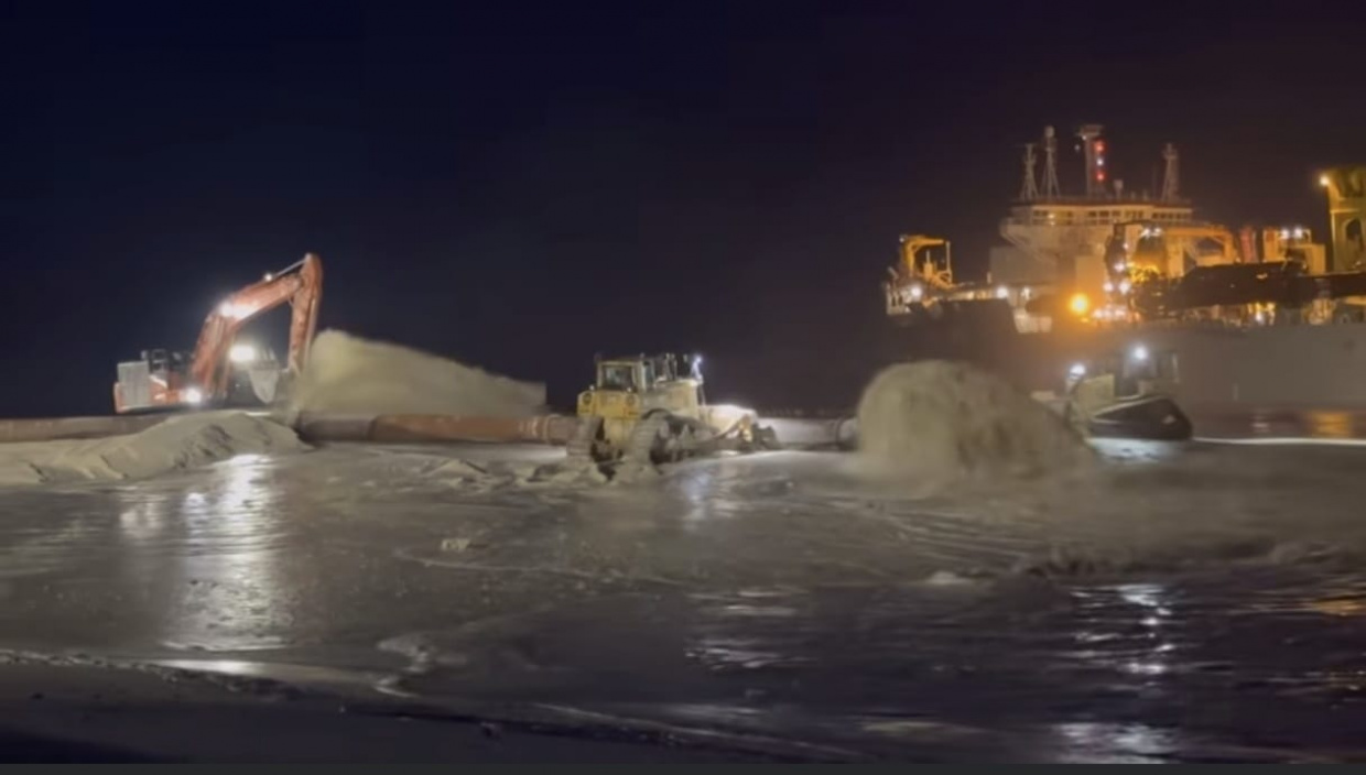 އެ މަސައްކަތް ކުރުމަށްޓަކައި ގެނައި ދުނިޔޭގެ ތިން ވަނައަށް އެންމެ ބޮޑު ޑްރެޖަރު ބޭނުންކޮށްގެން ބިން ހިއްކުމުގެ މަސައްކަތް ރޭ ފަތިހު 4:00 ހާއިރު ވަނީ ފަށާފައެވެ.