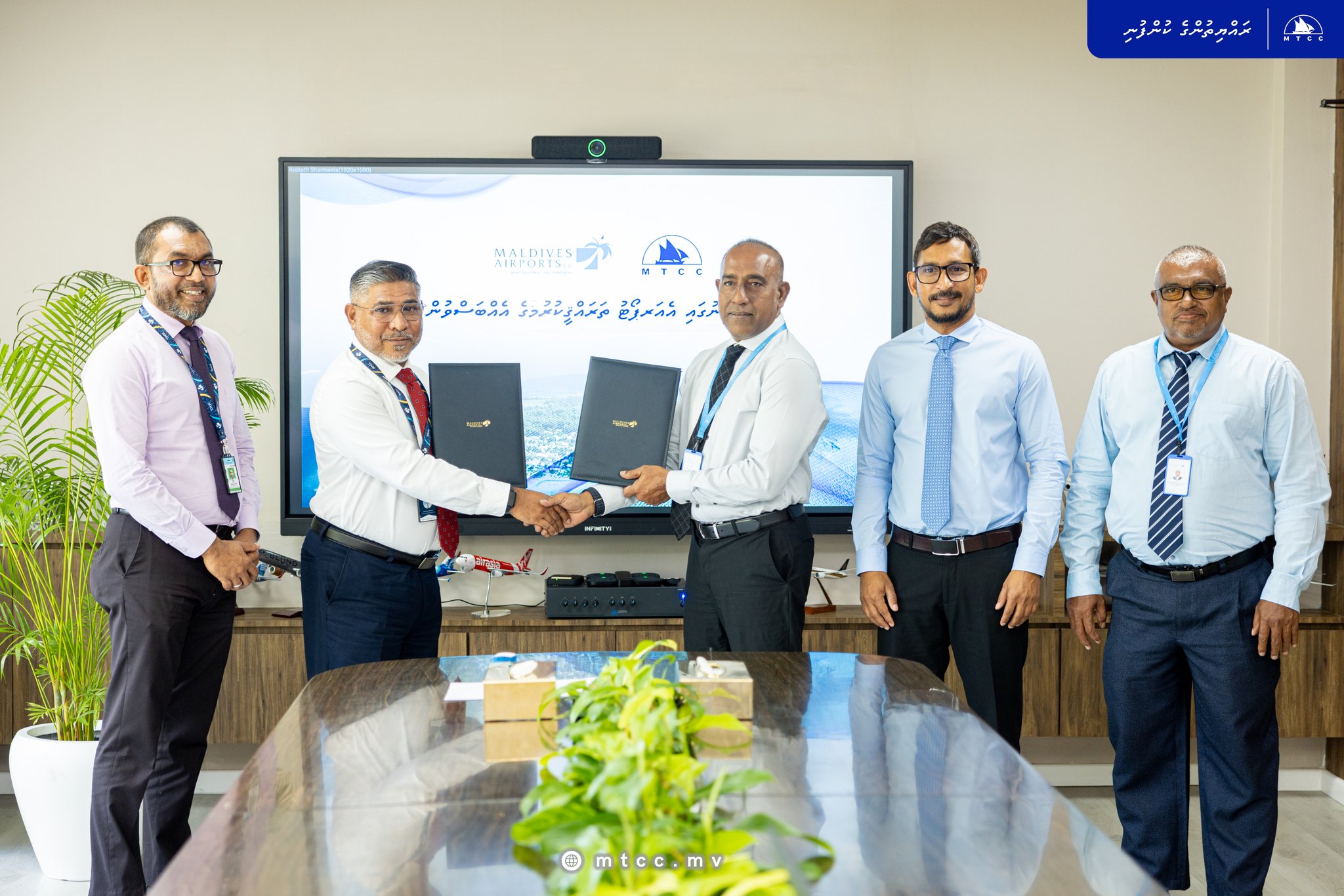 އެމްޓީސީސީގެ ފަރާތުން މި އެއްބަސްވުމުގައި ސޮއިކުރެއްވީ އެމް.ޓީ.ސީ.ސީގެ މެނޭޖިންގ ޑިރެކްޓަރ، ޑީސީޕީ (ރިޓަޔަރޑް) އަޙްމަދު ސަޢުދީއެވެ. އެމްއޭސީއެލްގެ ފަރާތުން ސޮއިކުރެއްވީ އެމްއޭސީއެލްގެ މެނޭޖިންގ ޑިރެކްޓަރ، އިބްރާހީމް ޝަރީފް މުޙައްމަދެވެ. މި އެއްބަސްވުމުގައި ސޮއިކުރުމަށް އެމް.އޭ.ސީ.އެލްގައި މިއަދު އޮތް ރަސްމިއްޔާތުގައި ރައްޔިތުން މަޖިލީހުގެ ޕީއެންސީގެ ޕާލަމެންޓްރީ ގްރޫޕްގެ ލީޑަރު، އިނގުރައިދޫ ދާއިރާގެ މެމްބަރު، އިބްރާހިމް ފަލާޙު ވެސް ބައިވެރިވެލެއްވިއެވެ.
