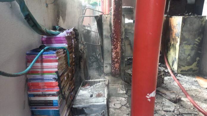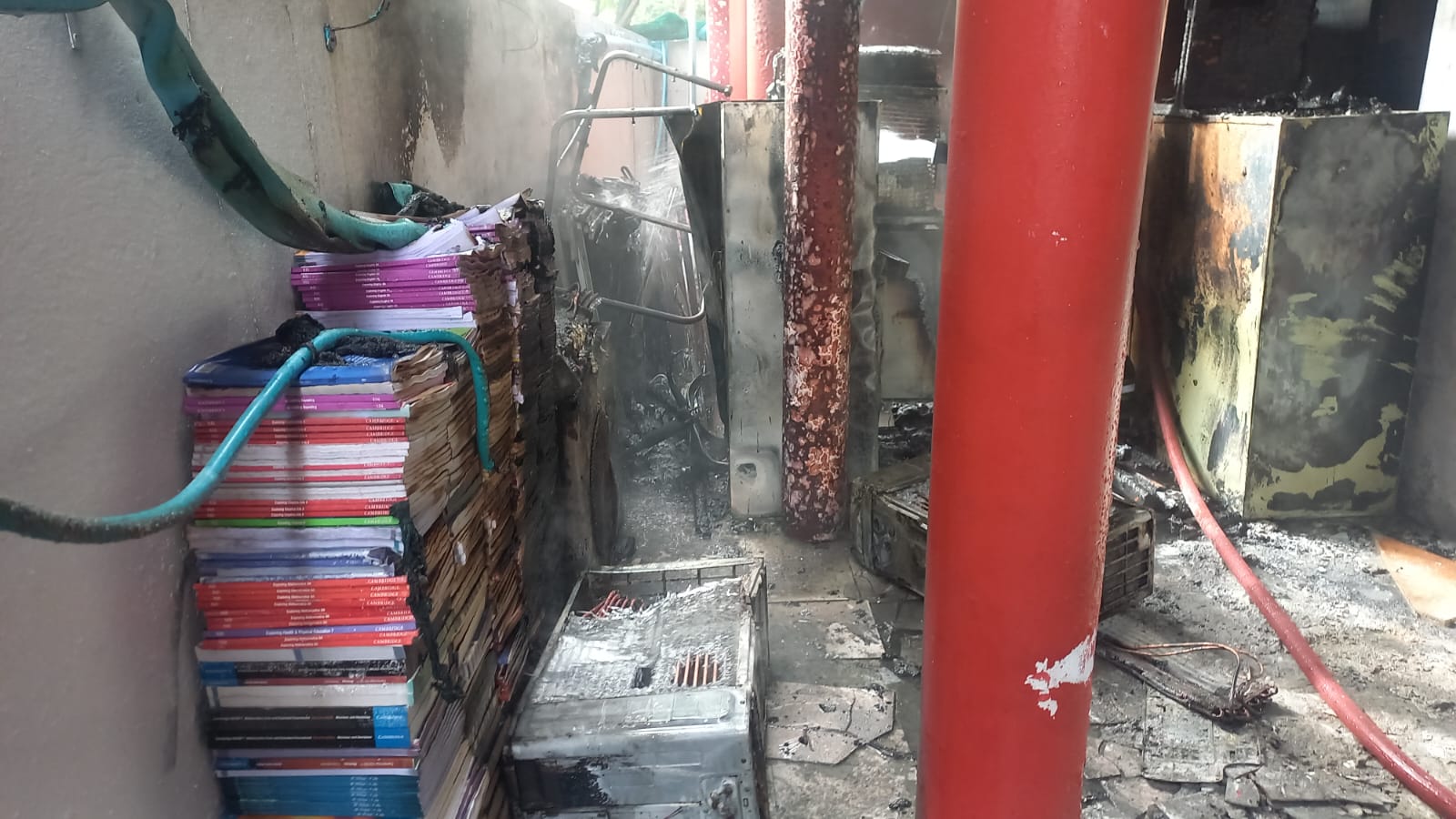 ފޭދޫ ބޮޑުމަގުގައި ހުންނަ ސްކޫލްގައި ރޯވި ހާދިސާގައި އެތަނުގެ ކްލާސް ރޫމް ބްލޮކެއްގެ މަތިން ބޯކޮށް ދުން އަރާ މަންޒަރު ފެނެ އެވެ. މި ހާދިސާއާ ގުޅިގެން ސްކޫލްގެ ކްލާސްރޫމްތަކުންނާއި ސްކޫލްގެ މުވައްޒަފުން ތިބޭ ބައިތަކުން މުވައްޒަފުންނާއި ދަރިވަރު ވަނީ ބޭރަށް ނެރެފަ އެވެ.